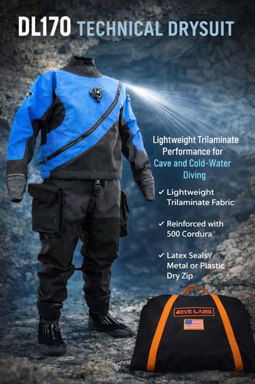 The DL170 is a lightweight, durable trilaminate drysuit engineered for demanding technical environments including cave diving, wreck penetration, and cold-water exploration. Built for serious divers who require mobility, protection, and long-term reliability.