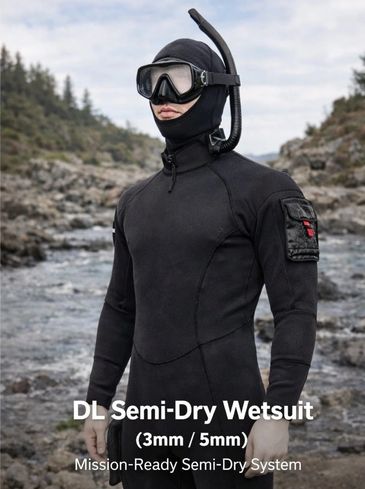 The DL Semi-Dry Series delivers lightweight thermal protection with enhanced sealing and durability for technical divers, instructors, and professional teams operating in cold-water environments.